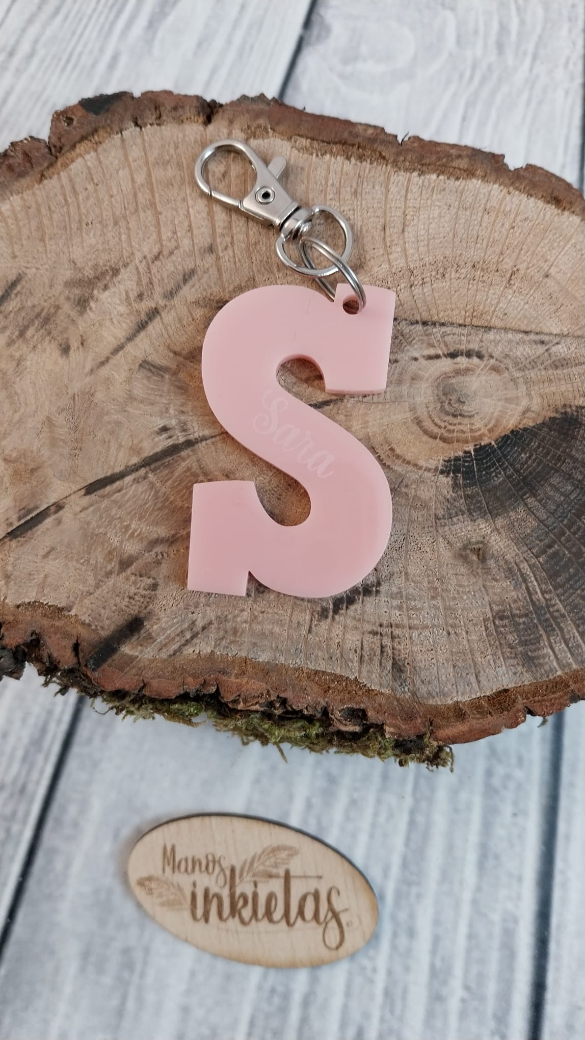 Originales y bonitos llaveros con la inicial de tu peque. En cada llavero podemos grabar el nombre del niño o niña.