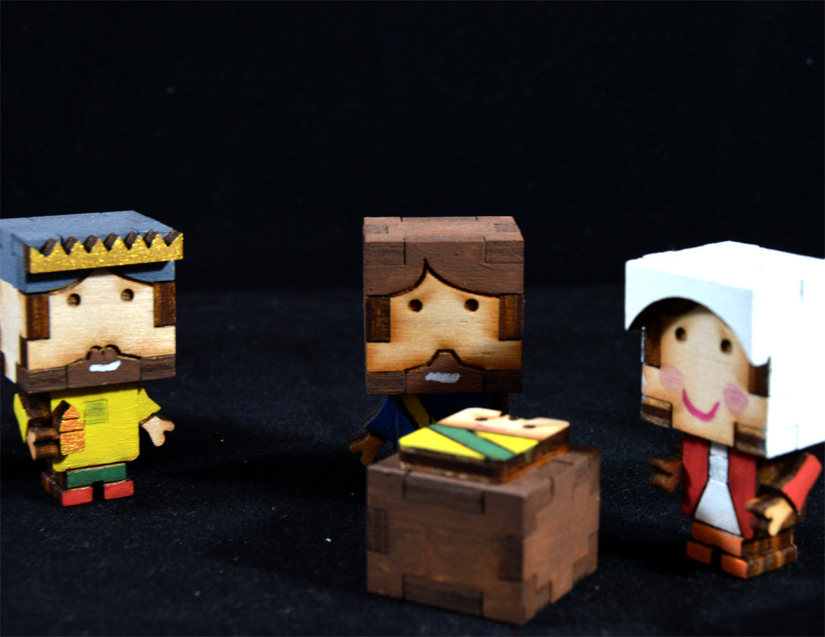 Hermoso y original nacimiento de madera en forma de cubitos, inspirado en la estética del videojuego Minecraft.