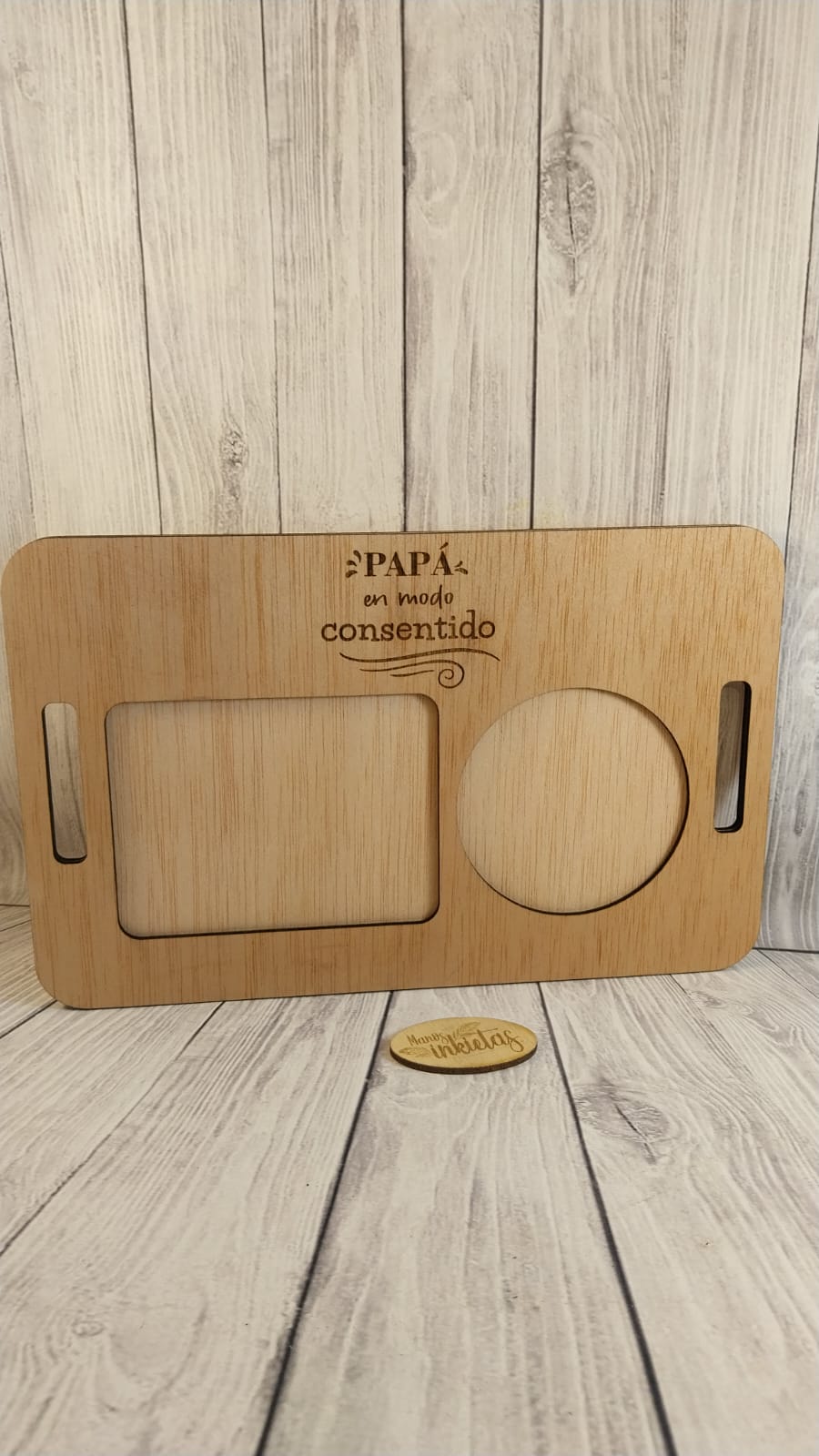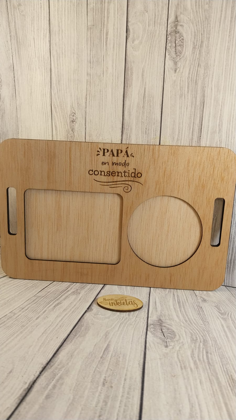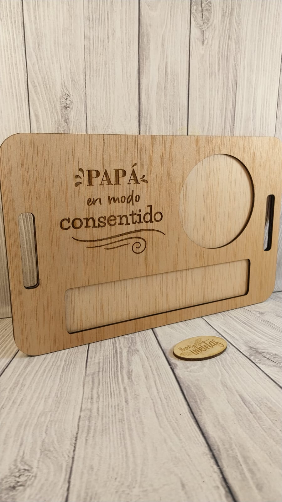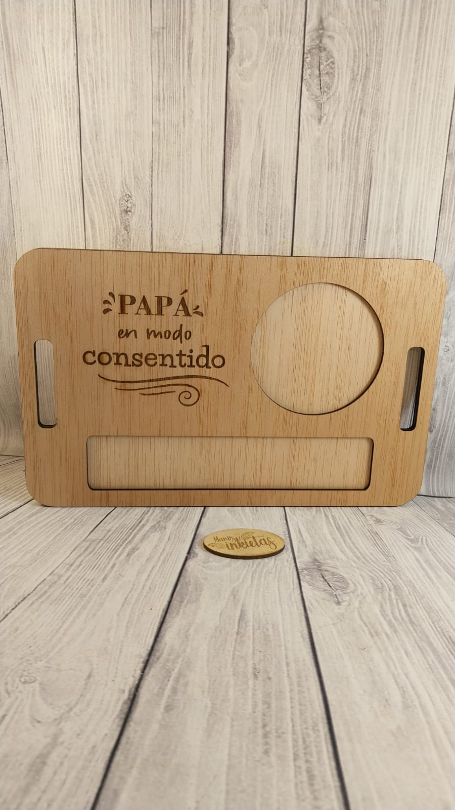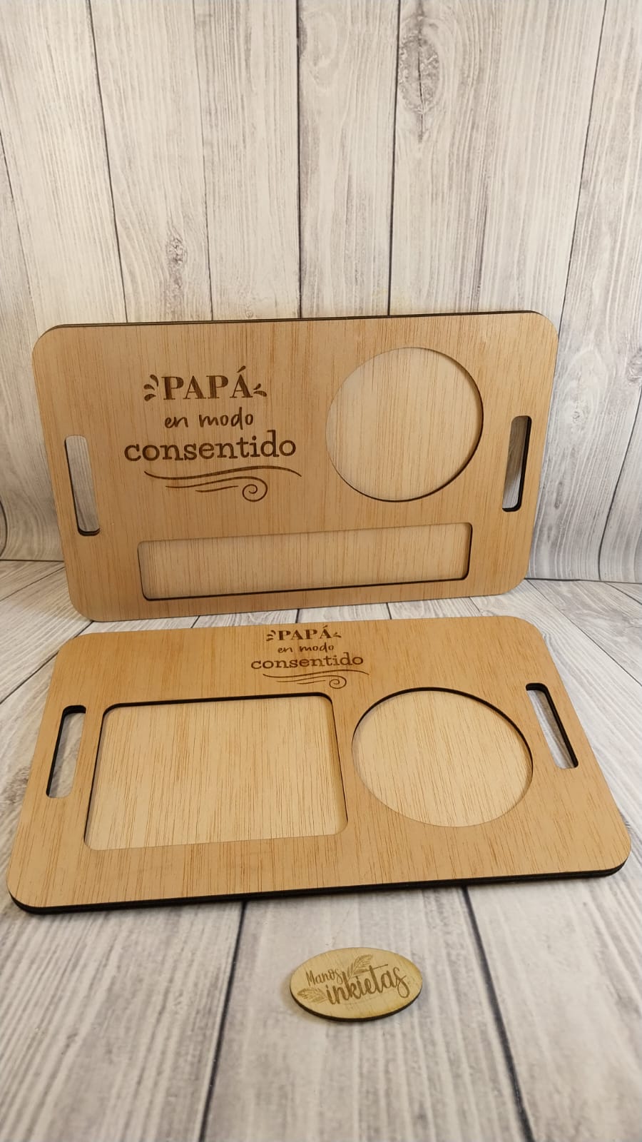 Las bandejas de desayuno Día del Padre son hechas de madera contrachapado 3mm y llevan tinta color roble en la capa superior.