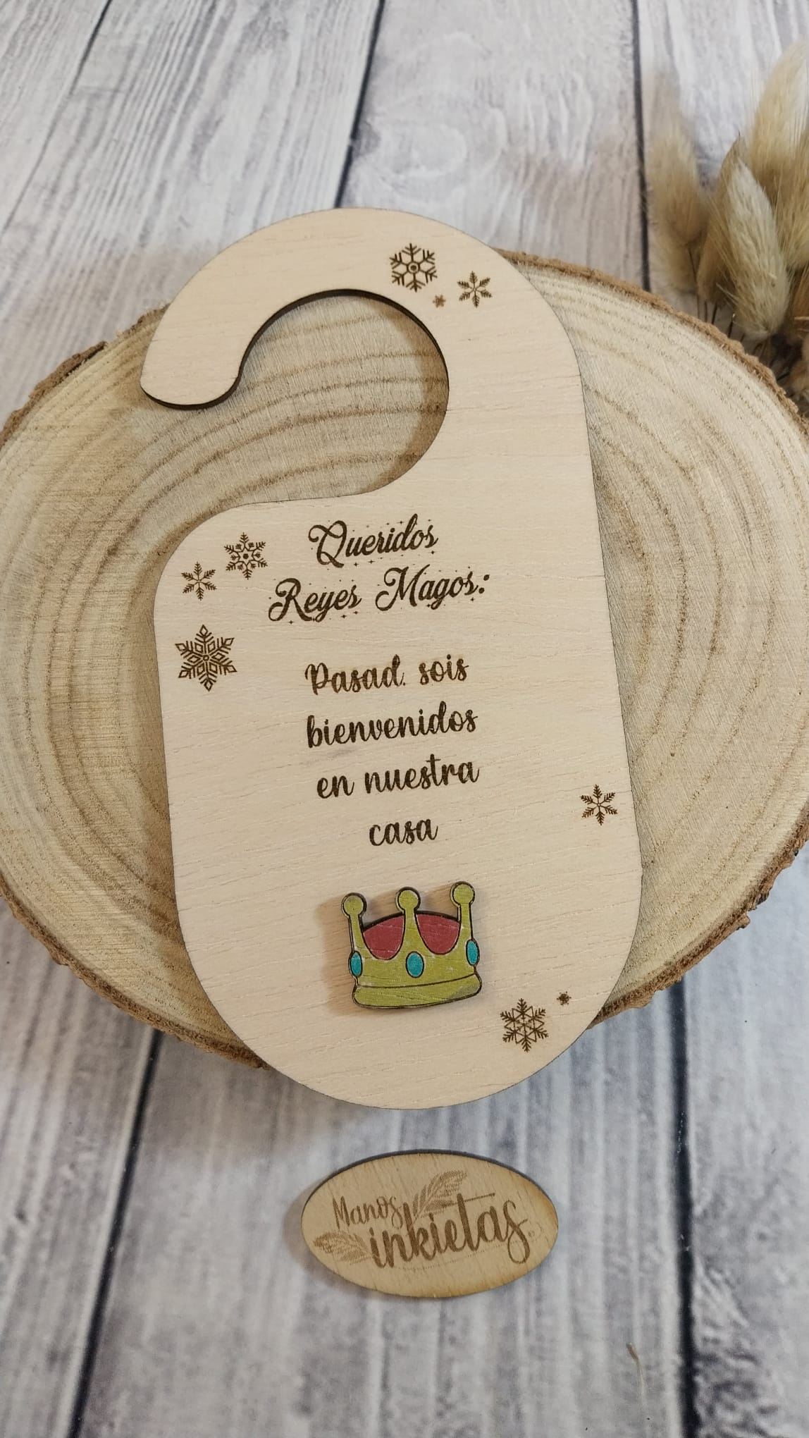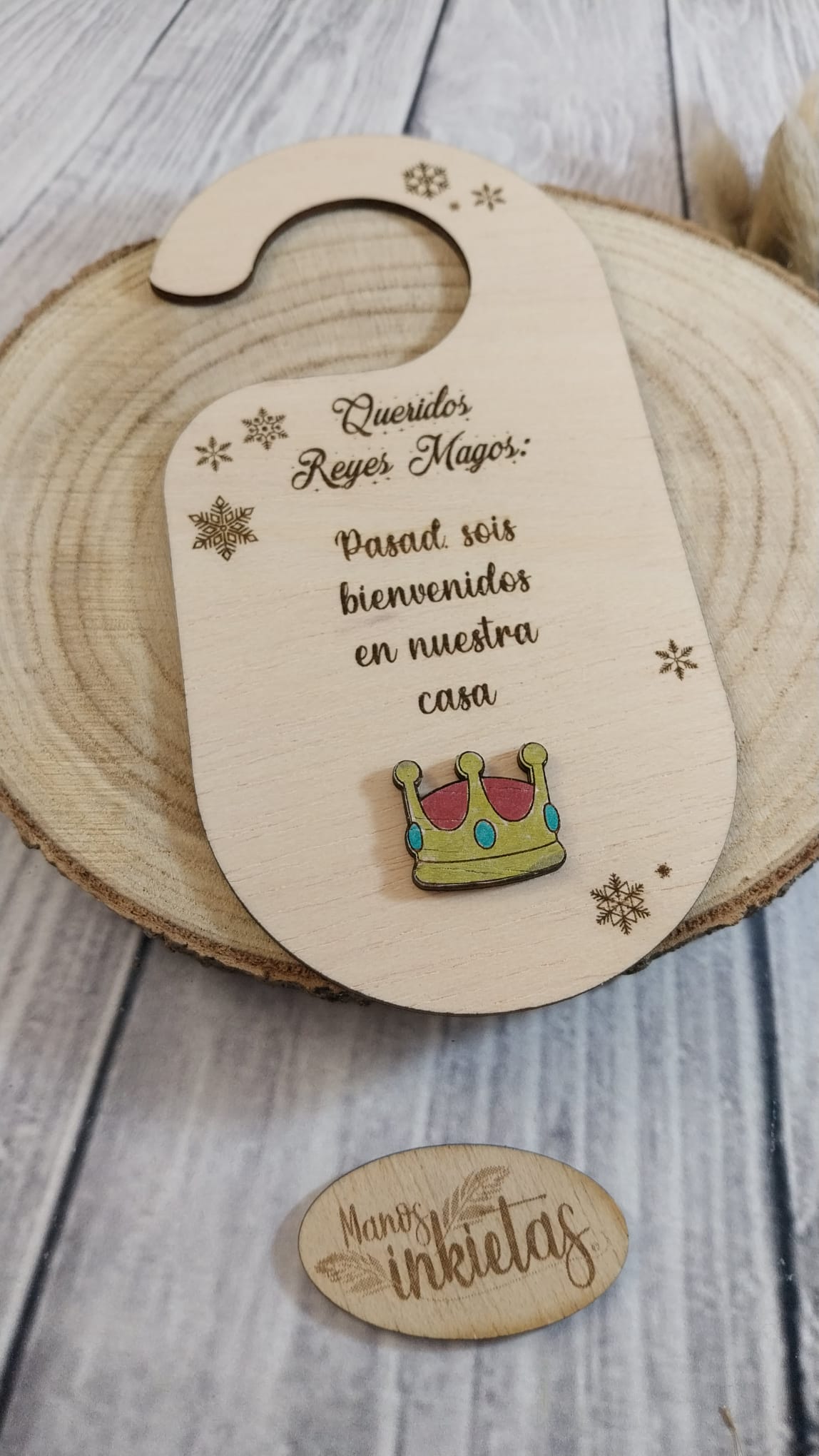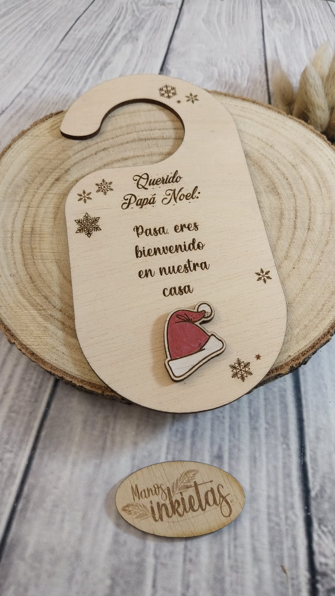 Hermoso y original Colgador para Puerta Papá Noel y Reyes Magos. Cada colgador de madera trae un mensaje dirigido a Papá Noel, Reyes Magos o el personaje de la cultura popular gallega, O Apalpador.
